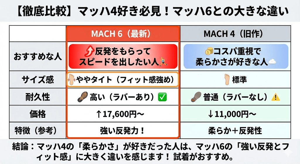 MACH4(マッハ4)の「柔らか+反発性」が好きだった人は、大きく違いを感じます。